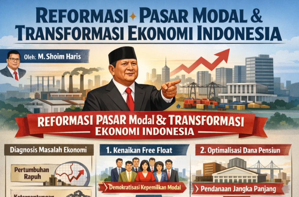Kebijakan Presiden Prabowo Subianto untuk mereformasi pasar modal—melalui demutualisasi Bursa Efek Indonesia (BEI), kenaikan ketentuan free float, dan optimalisasi peran dana pensiun—sering dibahas dalam bingkai teknis serta reaksi pasar sesaat. Padahal, jika ditelaah lebih dalam, paket kebijakan ini merupakan langkah strategis yang menyasar persoalan pokok ekonomi pembangunan Indonesia. Ini bukan sekadar soal menggenjot indeks atau merespons tekanan pemeringkat global, melainkan upaya sistematis membangun arsitektur pembiayaan yang kokoh untuk transformasi ekonomi jangka panjang. Dalam perspektif ekonomi pembangunan, pasar modal bukan tujuan akhir, melainkan instrumen vital untuk mendorong industrialisasi, memperluas basis ekonomi, dan mencapai kemandirian fiskal.